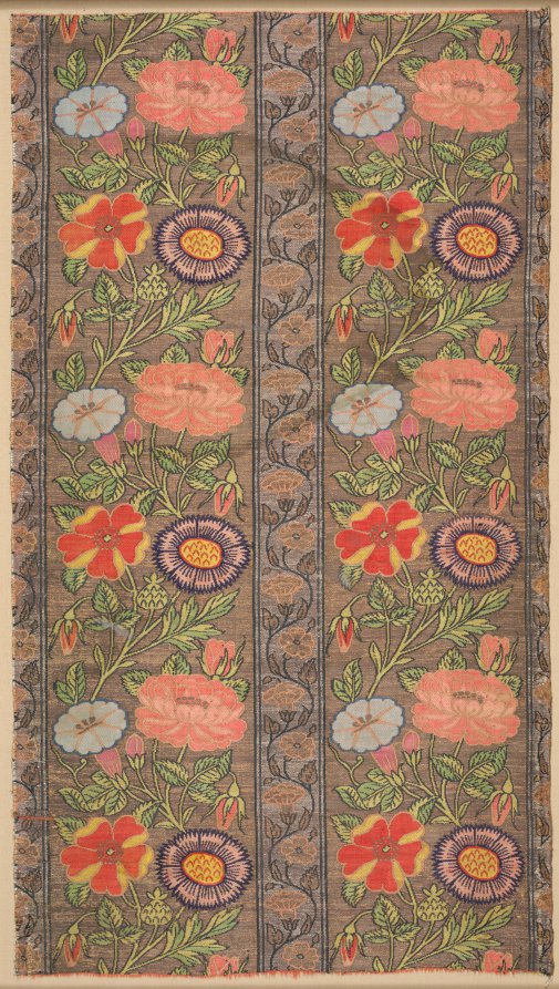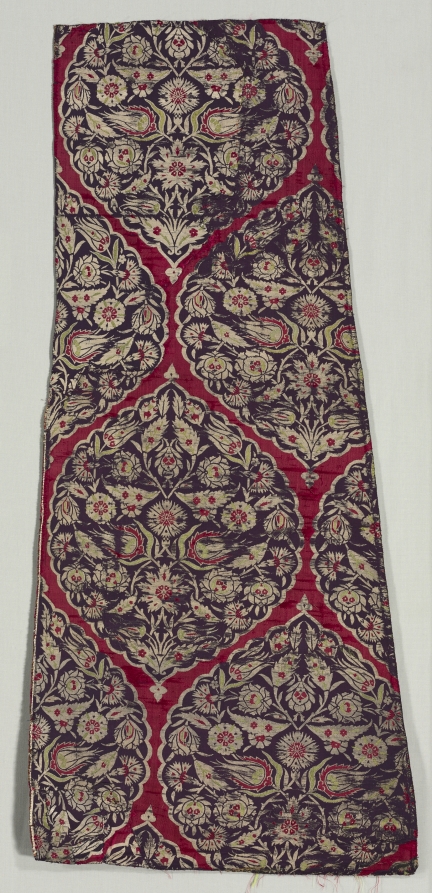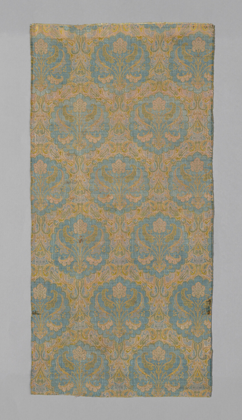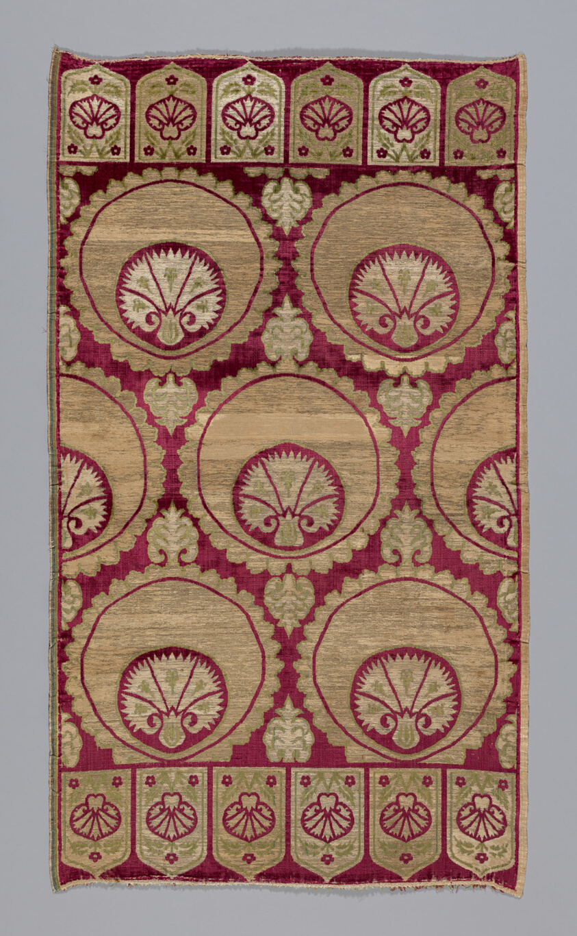 Heritage Synthesis: Brocaded silk with foliate medallions from a kaftan