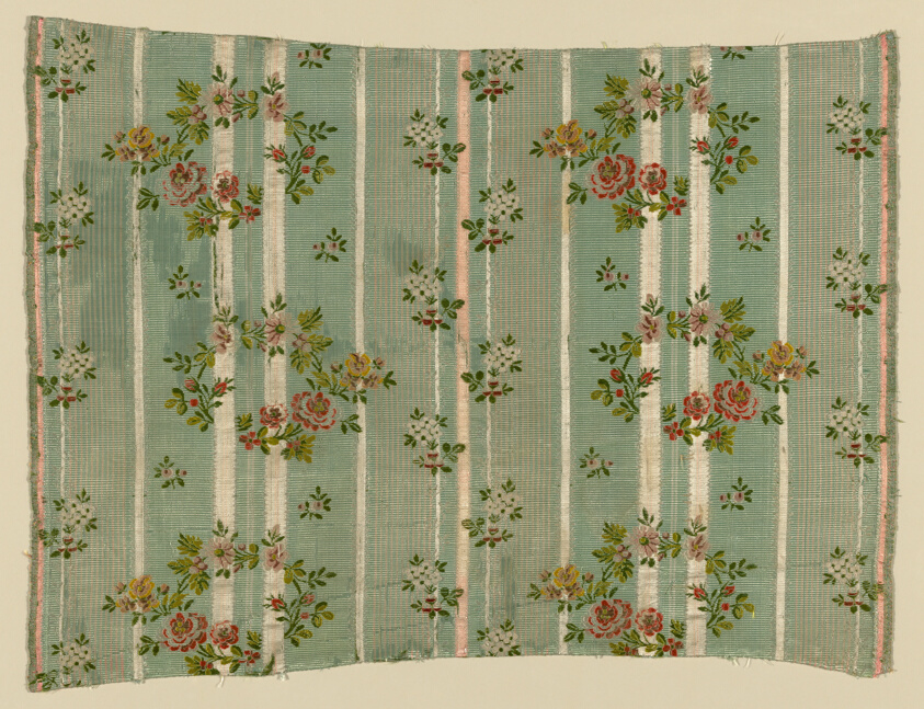 Heritage Synthesis: Section of Silk Fabric with Falconers Amid Rose Bushes
